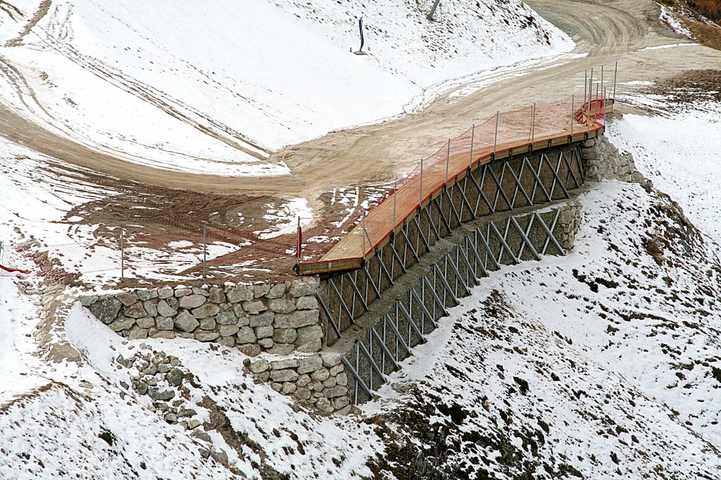 Le nouveau système de cages MODULO permet d'élargir des pistes de ski, des chemins ou des berges sans avoir recours à des solutions classiques coûteuses et lourdes à installer puisque sa pose ne nécessite ni forage, ni béton.